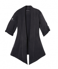 Top off your look in style with this shrug that's equally flattering paired with a skirt or jeans. 4.4-ounce, 62/33/5 poly/rayon/spandex jersey knit.